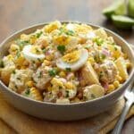 Mexican Corn Potato Salad is a vibrant and flavorful side dish combining tender potatoes, sweet corn kernels, and a zesty dressing made with mayonnaise, Cholula hot sauce, fresh lime juice, and cotija cheese. This easy-to-make salad is perfect for any fiesta or gathering, offering a delightful balance of creaminess, spice, and freshness, with the option to include chopped hard-boiled eggs for added protein.