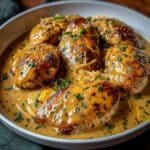Serve the chicken atop a bed of fluffy rice or creamy polenta for a cozy dinner plating. When hosting, arrange chicken breasts neatly on a platter and garnish with caramelized onions and fresh herbs for visual appeal. Leftovers also make fantastic sandwiches or wraps for next-day lunches.
